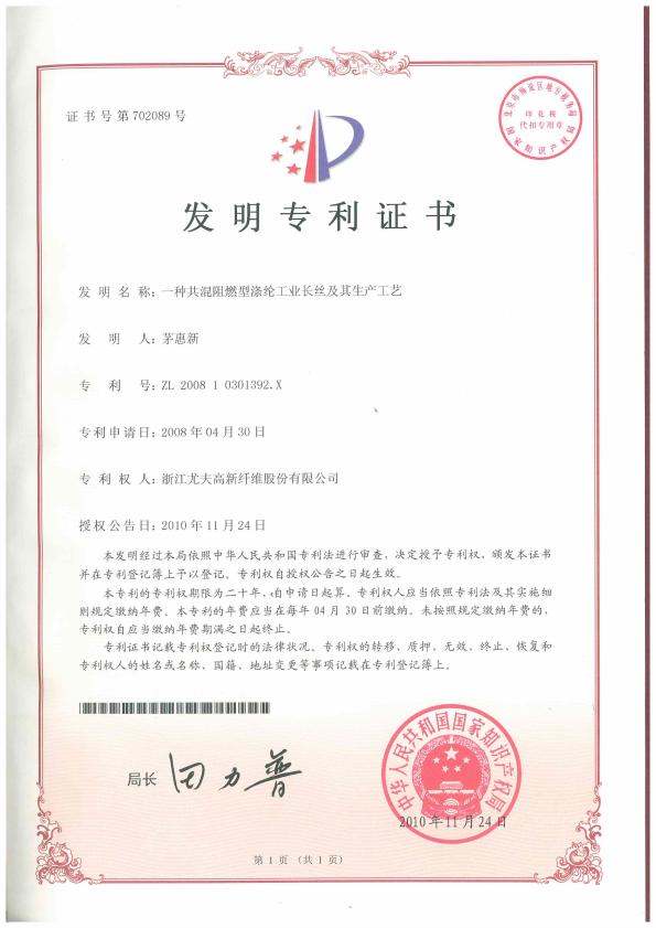 • 一種共混阻燃型滌綸工業(yè)長絲及其生產(chǎn)工藝