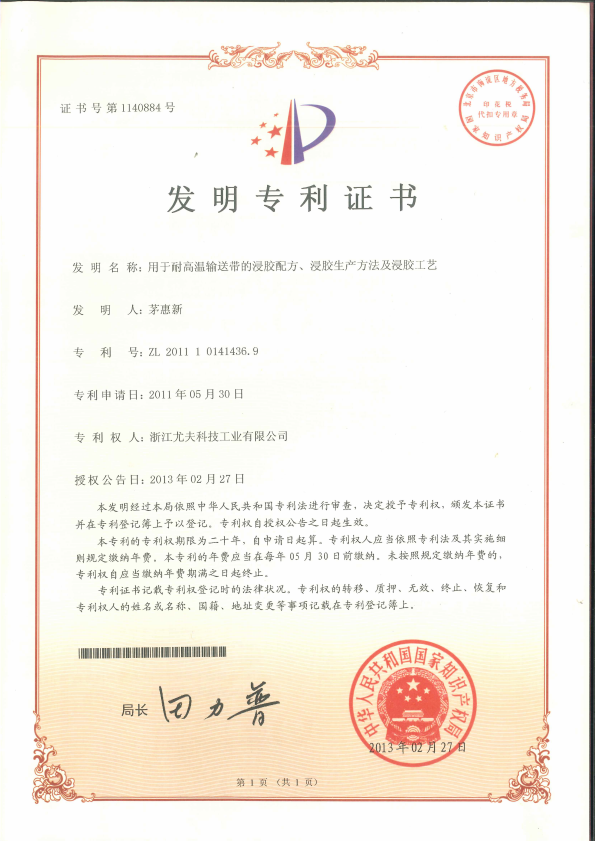 • 發(fā)明-用于耐高溫輸送帶的浸膠配方、浸膠生產(chǎn)方法及浸膠工藝