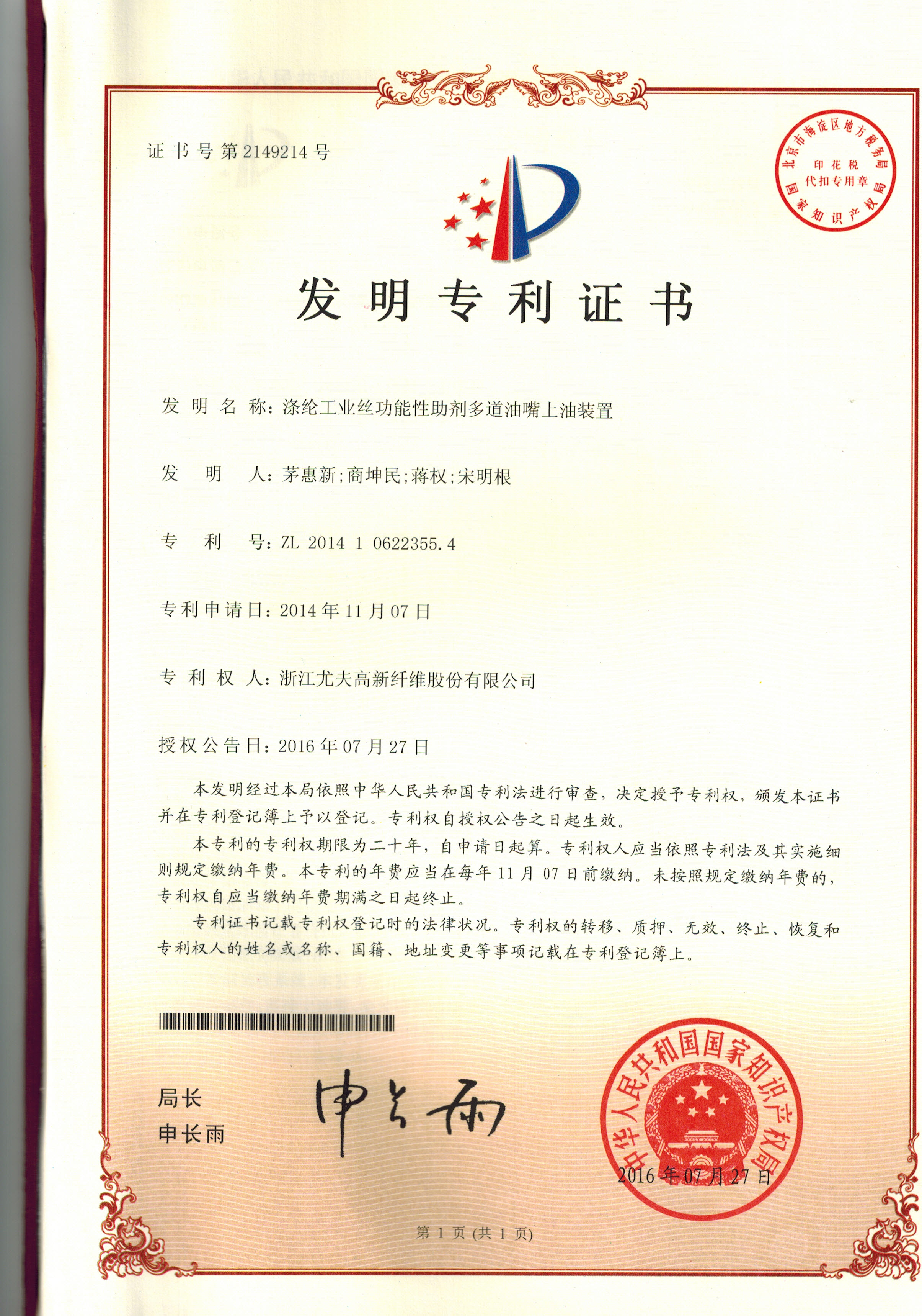 • 滌綸工業(yè)絲功能性助劑多道油嘴上油裝置