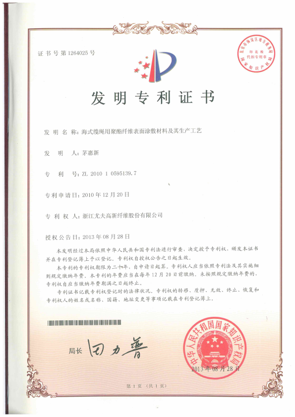 • 海式纜繩用聚酯纖維表面涂敷材料及其生產(chǎn)工藝