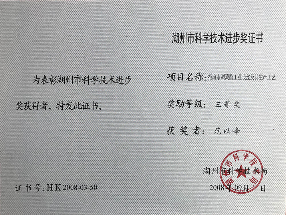 • 2008湖州市科技進步獎三等獎-范以峰