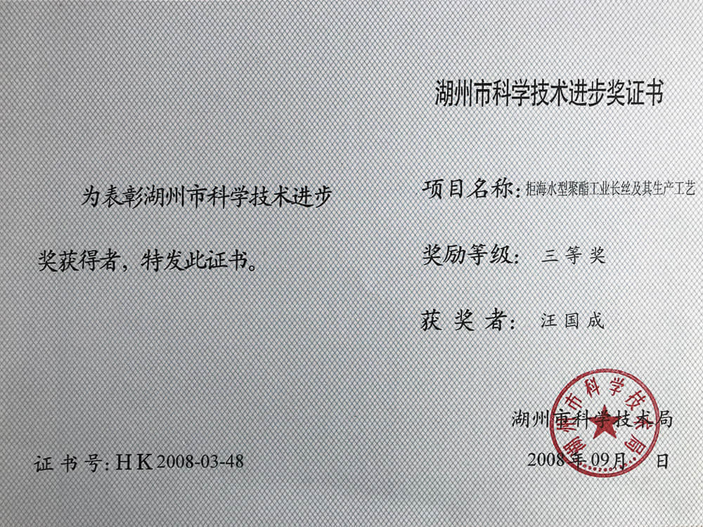 • 2008湖州市科技進(jìn)步獎(jiǎng)三等獎(jiǎng)-汪國成